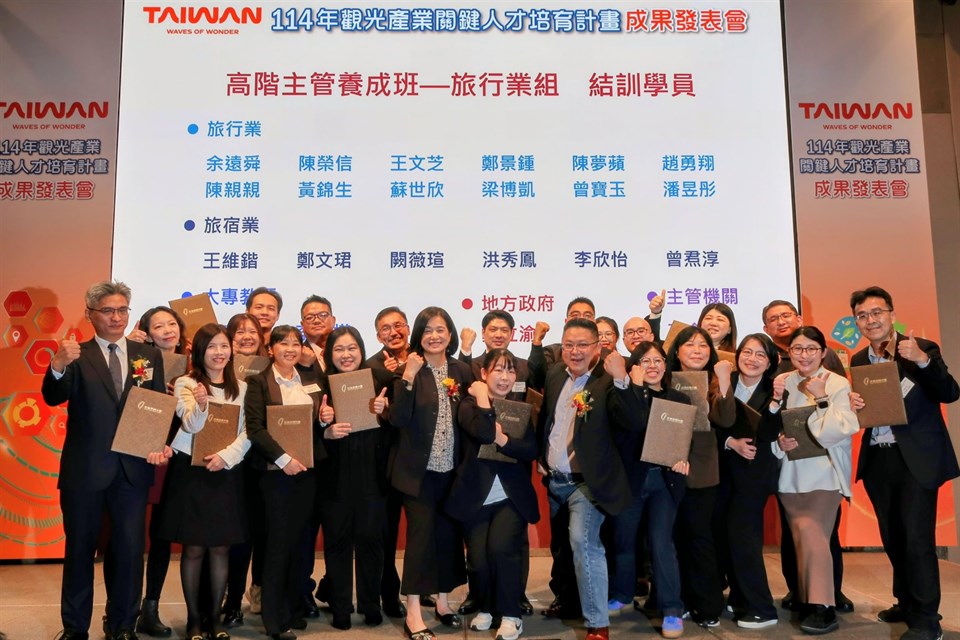 為推動觀光產業永續創新與數位轉型,交通部觀光署於114年積極推動「觀光產業關鍵人才培育計畫」,以增進從業人員專業素養,進而帶動整體產業升級。此項計畫聚焦於「永續x數位」雙軸轉型,透過高階主管養成班、中階主管培訓及觀光論壇等三大課程,為企業育才,提升從業人員競爭力,開拓視野與格局,並於本(5)日在台北遠東香格里拉舉辦成果發表會,分享114年度的培訓成果。